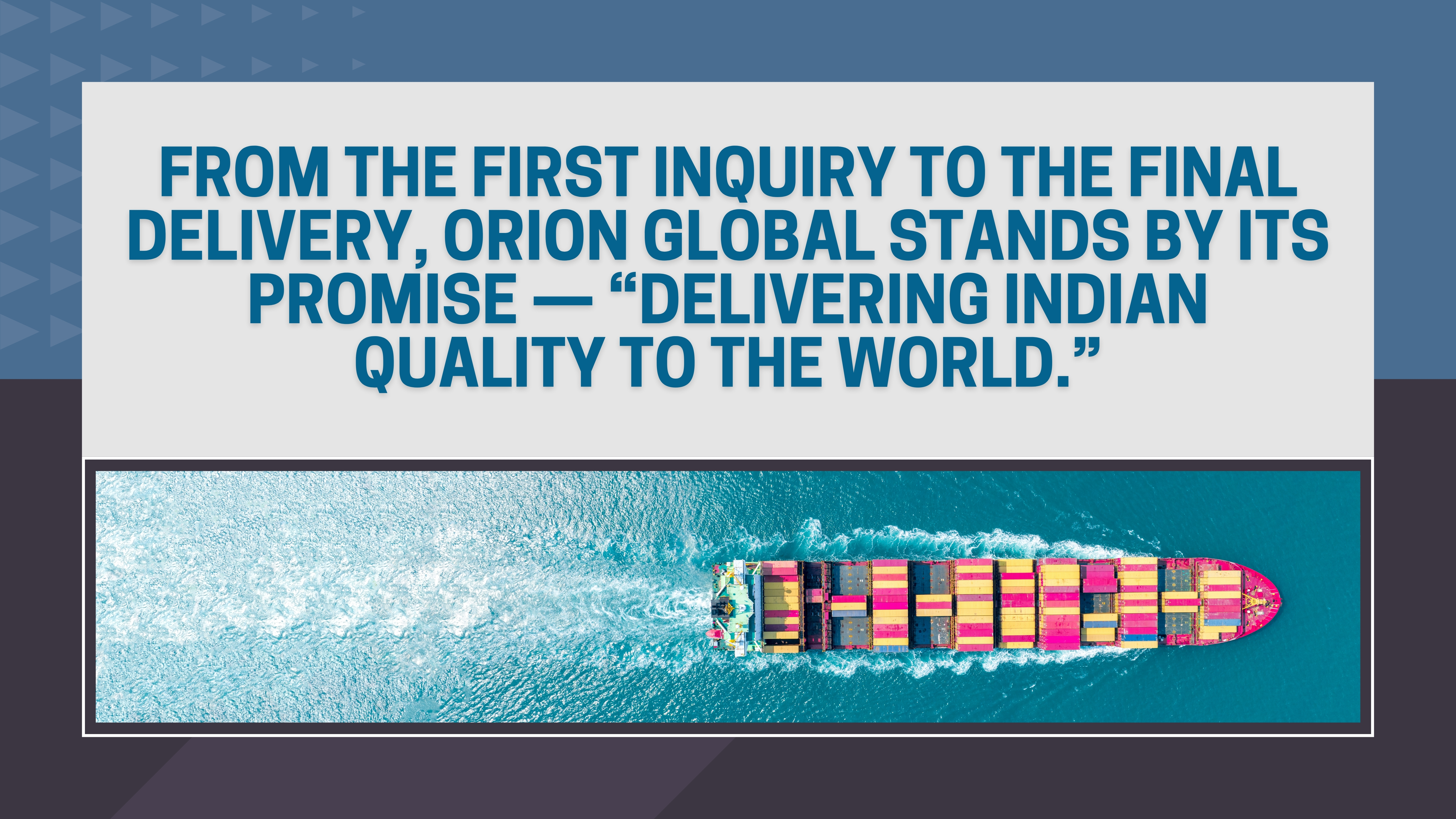 At Orion Global, our mission is simple — to bridge the gap between Indian producers and international buyers through quality, trust, and transparency. Every product we export is carefully sourced, processed, and packaged to meet global quality standards and client expectations.